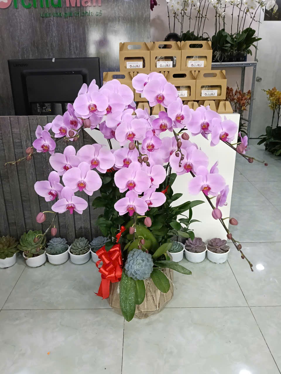 Quà tặng khai trương: Ưu tiên chậu lan vàng hoặc phối màu đỏ – vàng để mang ý nghĩa phát tài phát lộc.
